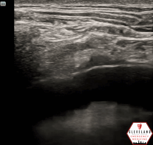 Prep the skin with chlorhexidine; apply sterile drape and probe cover, if time permits.