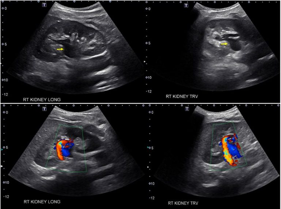 **Both of this patient’s kidneys appear to have grade 4 or severe hydronephrosis based on ultrasound.